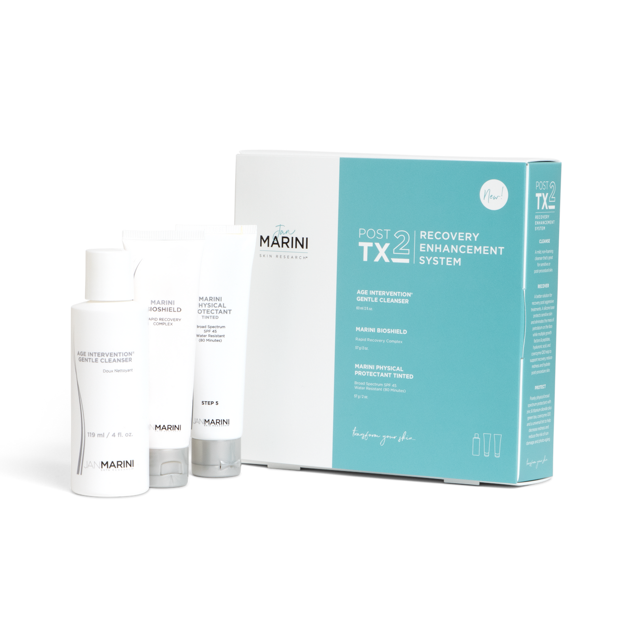 • Marini Bioshield: A better solution for recovery post aggressive treatments. A silicone base protects sensitive skin and eliminates the mess of petrolatum-based products on the face. Multiple growth factors & peptides, hyaluronic acid and coenzyme Q10 help to support recovery, reduce redness and hydrate post-procedure skin. Clincally proven anti-inflammatory benefits for post-procedure skin to reduce downtime and enhance healing.